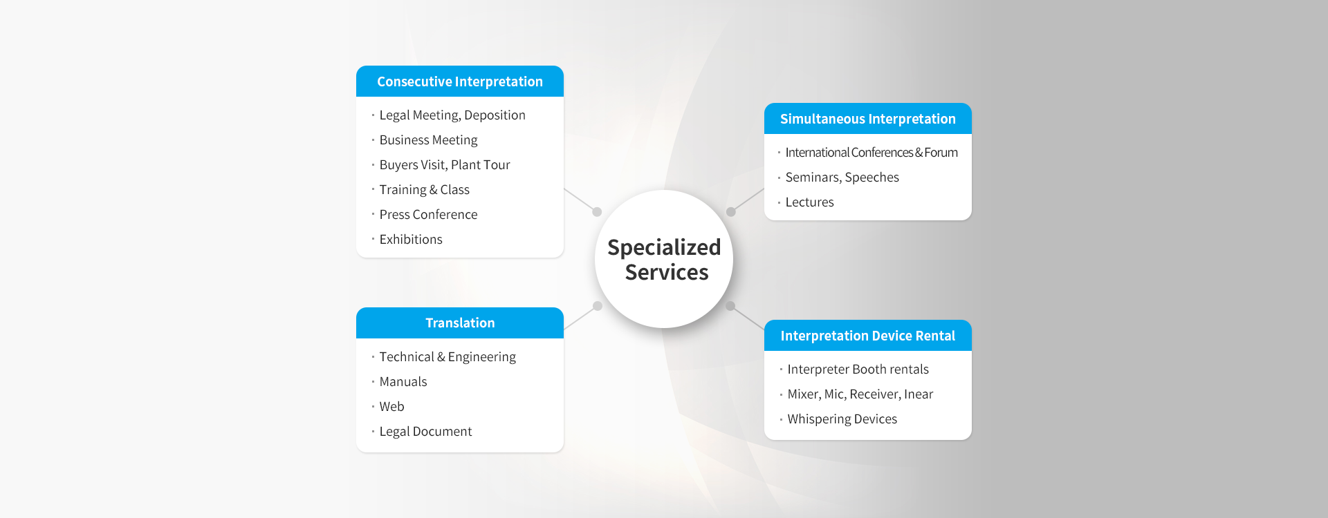 Interpreters take charge of booths at export conferences and international exhibitions to provide interpreting and information.